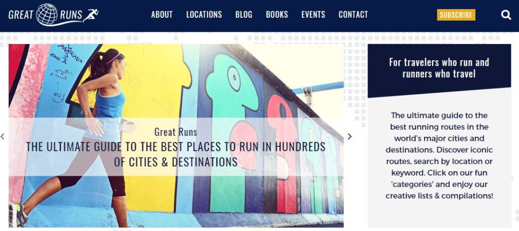 While we are on the subject of running while traveling, I’ll give a quick plug to Great Runs. It is a website that compiles all the best running routes in cities around the world. As soon as I know I’m traveling somewhere, it’s my first stop. It features all the popular local spots, as well as some more off the beaten path places to run, so they cover all of your options whether you are in town for a day or a week.