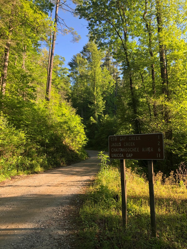 We met at the game check station on Chattahoochee River Road (FS 44) and used that as our start and finish spot. The route follows FS 44 for roughly 10 miles, climbing past Low Gap and Jasus Creek campgrounds. You climb pretty steadily for the first five miles or so before coming to a very welcome descent down to the Upper Chattahoochee River Campground. When topped out after the initial climb, Sean turned around and headed back to the cars where he was going to get on his bike and go up the opposite side of the run to – hopefully – meet up with us on our way down.